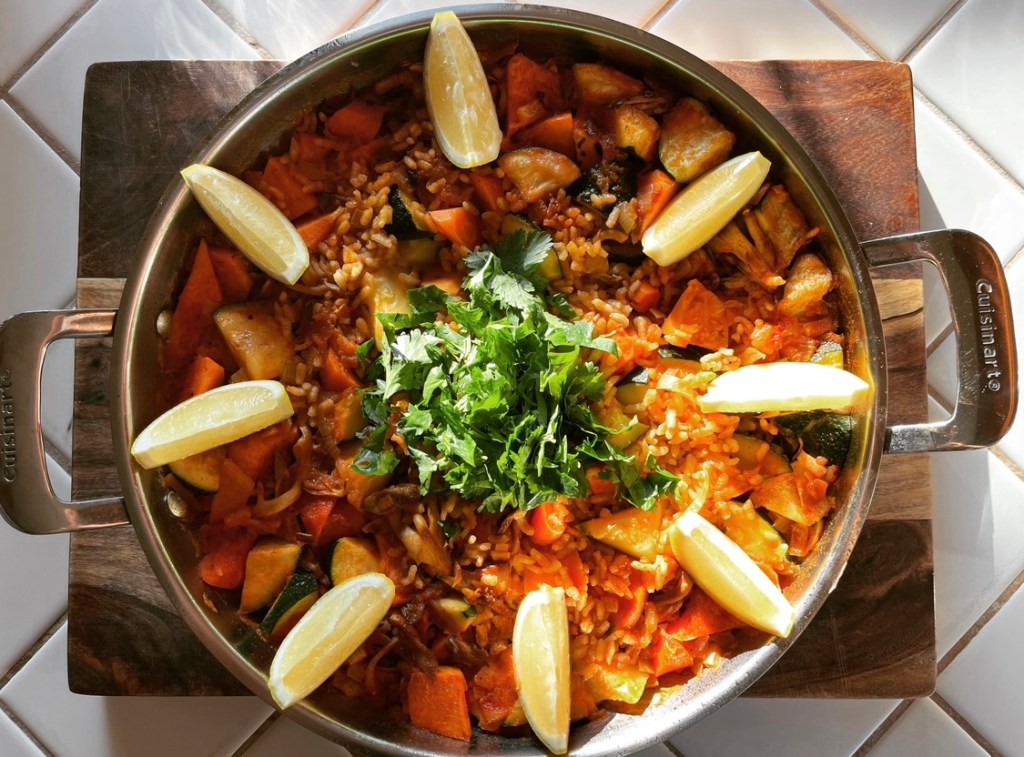 Rice, oyster mushrooms, vegetables and some Hungarian paprika, simple yet great combination if you like hearty vegetable dishes. Topped with fresh cilantro and lemon juice.